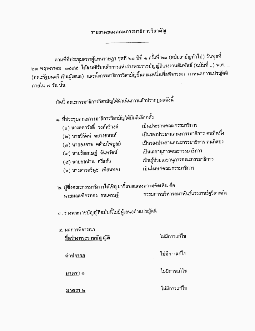 ชื่อเอกสาร :   ร่างพระราชบัญญัติแรงงานสัมพันธ์ (ฉบับที่..) พ.ศ. .... ซึ่งคณะกรรมาธิการวิสามัญพิจารณาเสร็จแล้ว