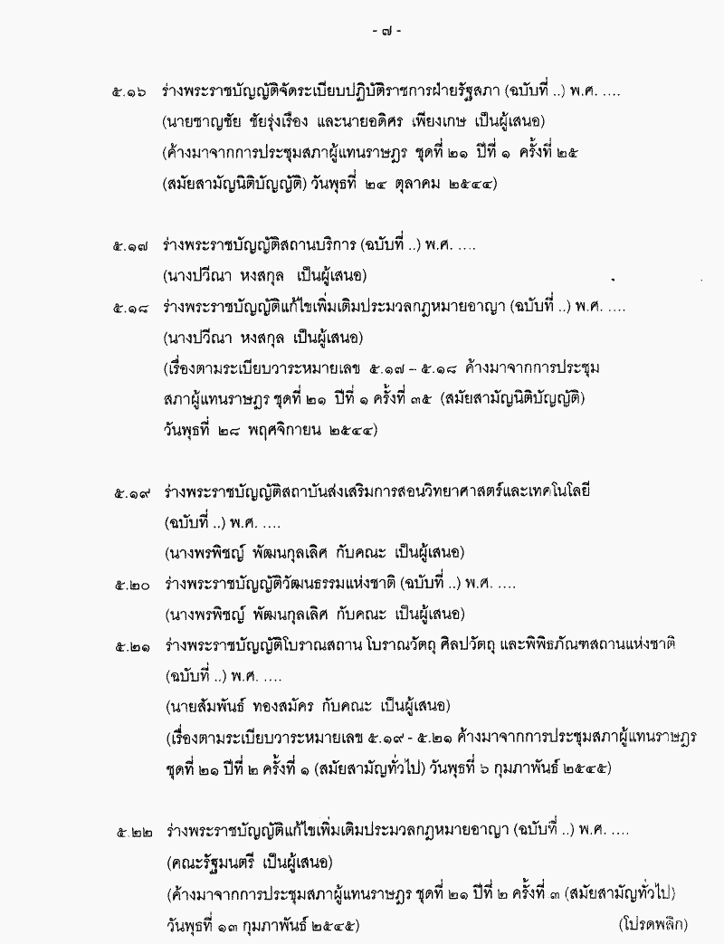 • ระเบียบวาระการประชุมสภาผู้แทนราษฎร > ชุดที่ 21 > ปีที่ 2 > สมัยสามัญทั่วไป > ครั้งที่ 16