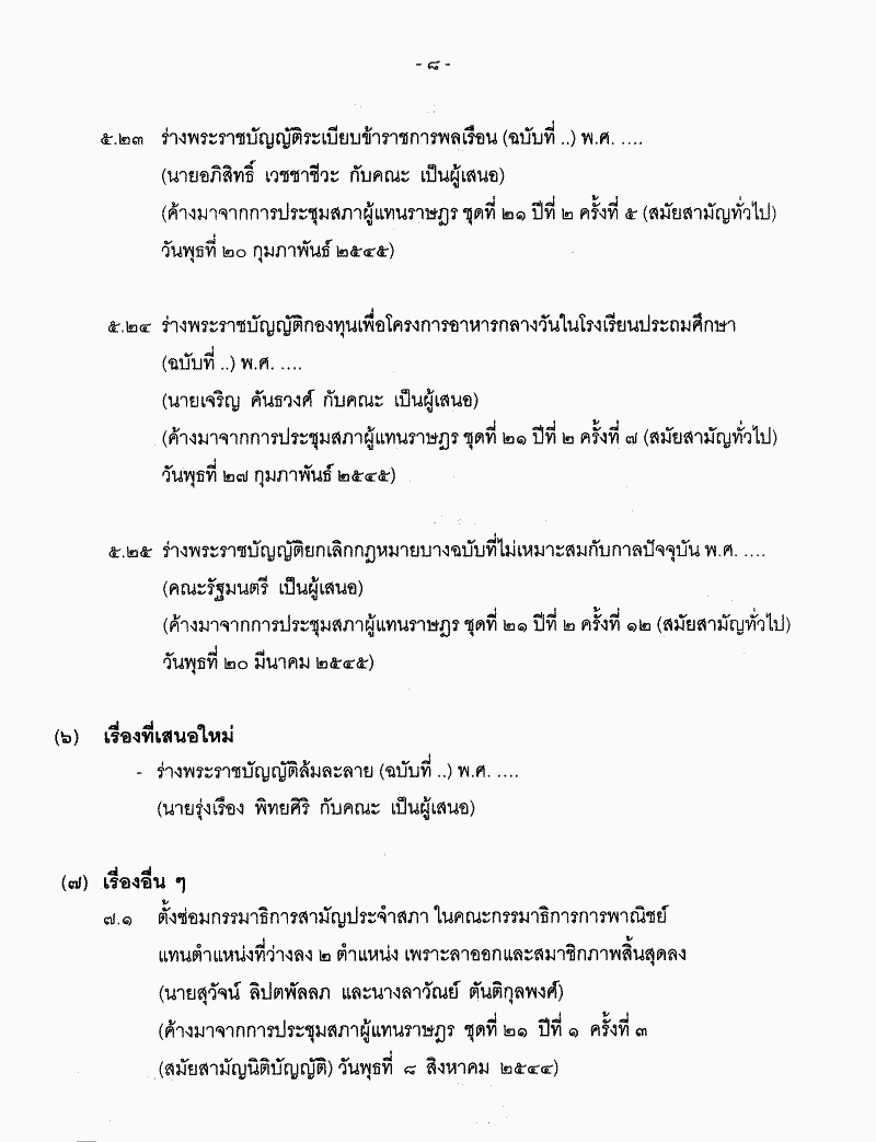 • ระเบียบวาระการประชุมสภาผู้แทนราษฎร ชุดที่ 21 ปีที่ 2 ครั้งที่ 16 (สมัยสามัญทั่วไป) วันพุธที่ 3 เมษายน 2545