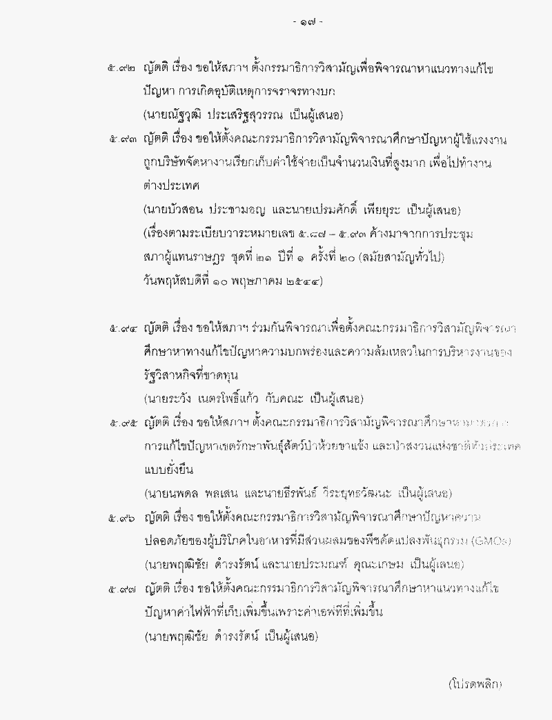 ระเบียบวาระการประชุมสภาผู้แทนราษฎร > ชุดที่ 21 > ปีที่ 2 > สมัยสามัญทั่วไป > ครั้งที่ 17