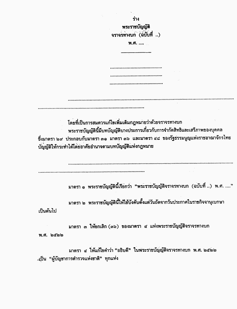 • ร่างพระราชบัญญัติจราจรทางบก (ฉบับที่..) พ.ศ.....