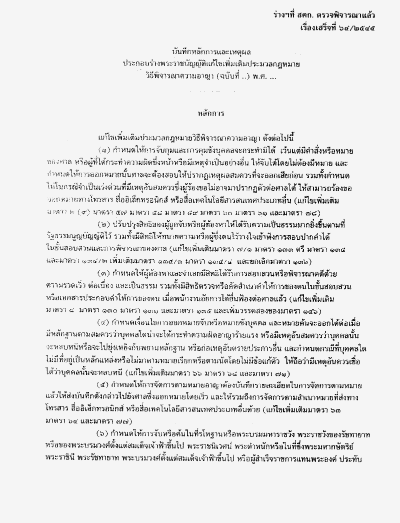 ร่างพระราชบัญญัติแก้ไขเพิ่มเติมประมวลกฎหมายวิธีพิจารณาความอาญา (ฉบับที่..) พ. ศ.....