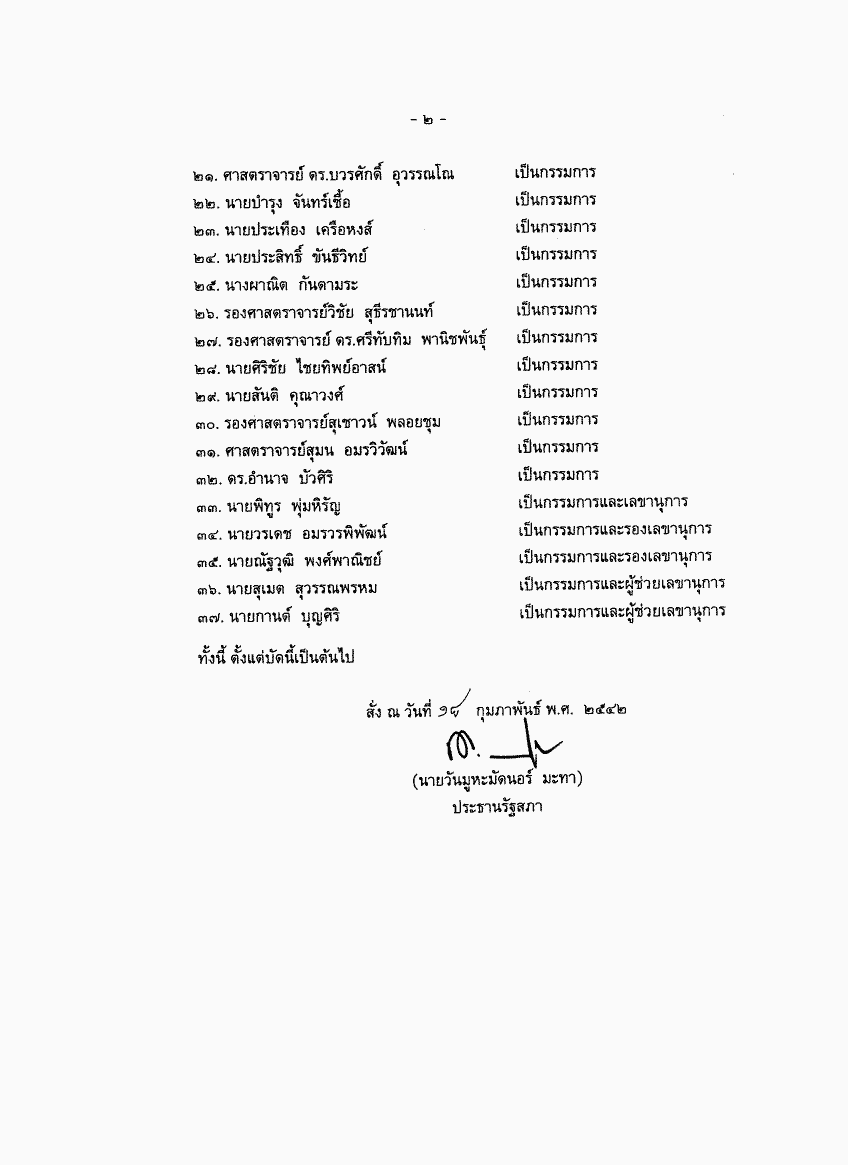คำสั่งรัฐสภาที่ 11 / 2542 เรื่อง แต่งตั้งคณะกรรมการอำนวยการชมรมพุทธศาสน์สภาผู้แทนราษฎร |