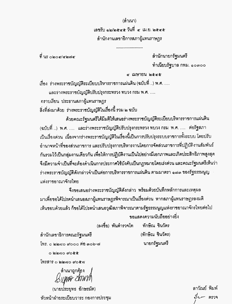 • ร่างพระราชบัญญัติระเบียบบริหารราชการแผ่นดิน(ฉบับที่..) พ.ศ..... (คณะรัฐมนตรี เป็นผู้เสนอ)
