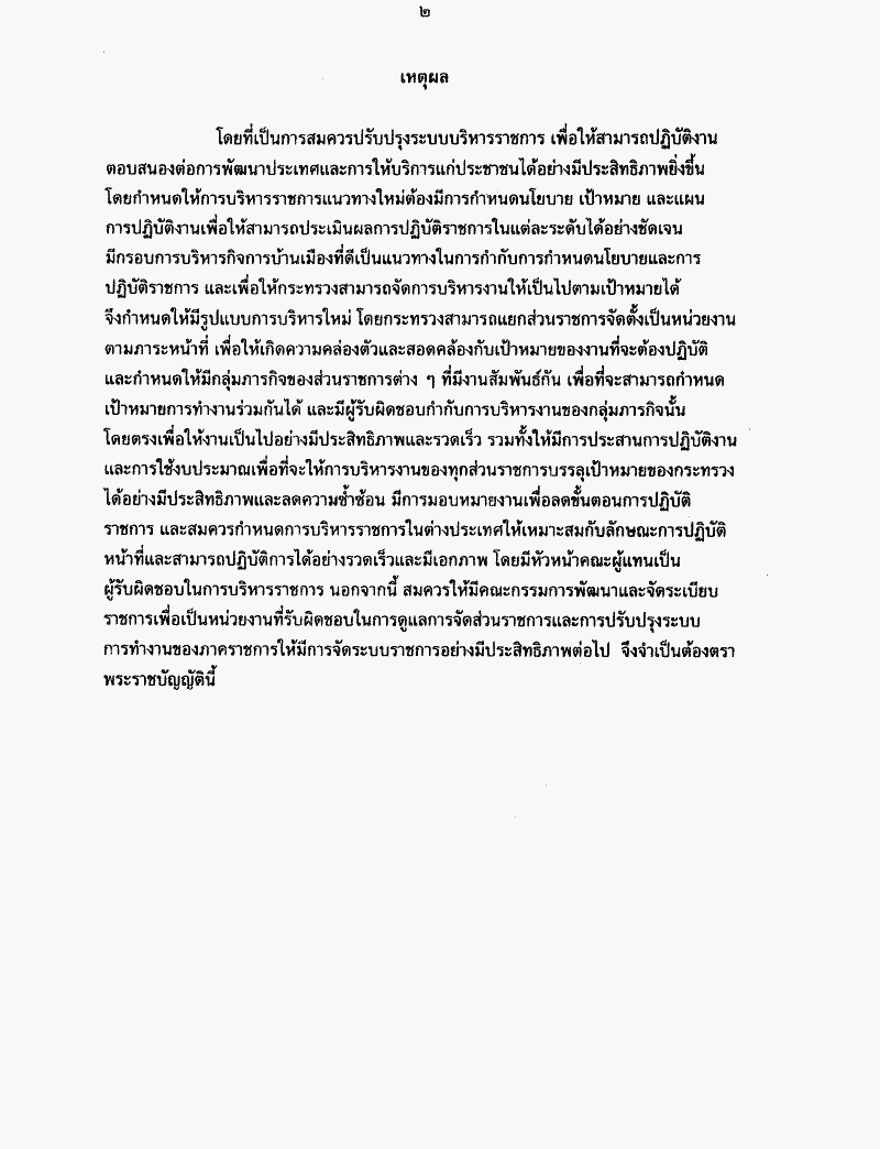 ชื่อเอกสาร :   ร่างพระราชบัญญัติระเบียบบริหารราชการแผ่นดิน(ฉบับที่..) พ.ศ..... (คณะรัฐมนตรี เป็นผู้เสนอ)