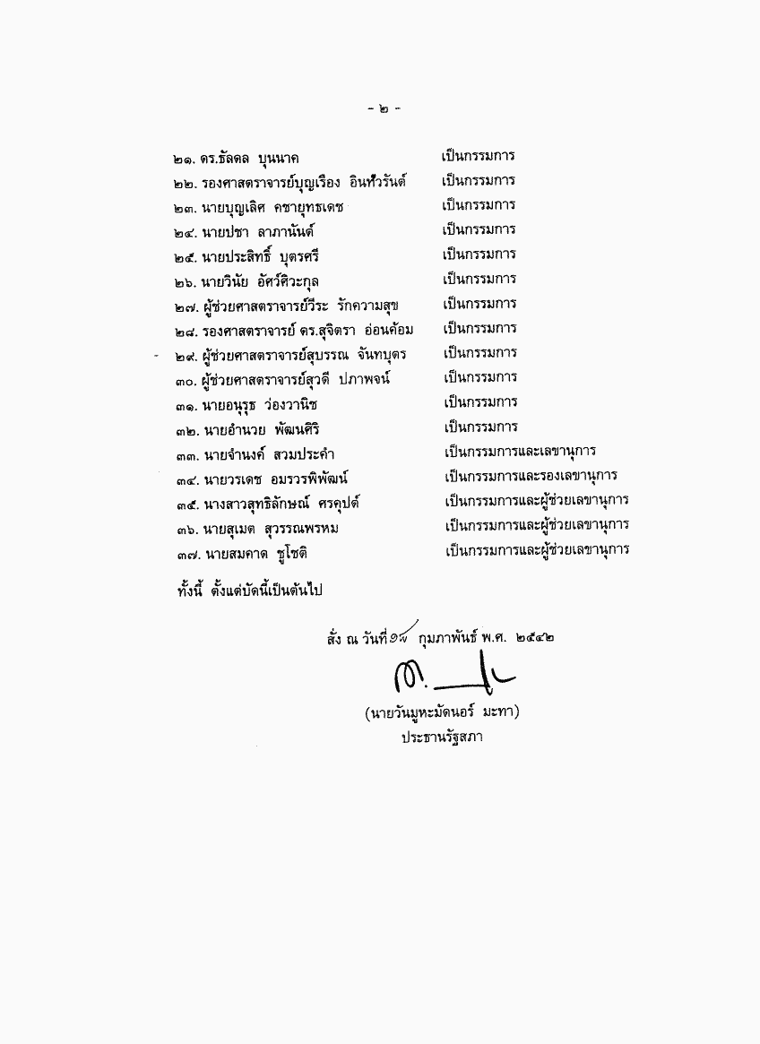 คำสั่งรัฐสภาที่ 12 / 2542 เรื่อง แต่งตั้งคณะกรรมการอำนวยการชมรมพุทธศาสน์วุฒิสภา |