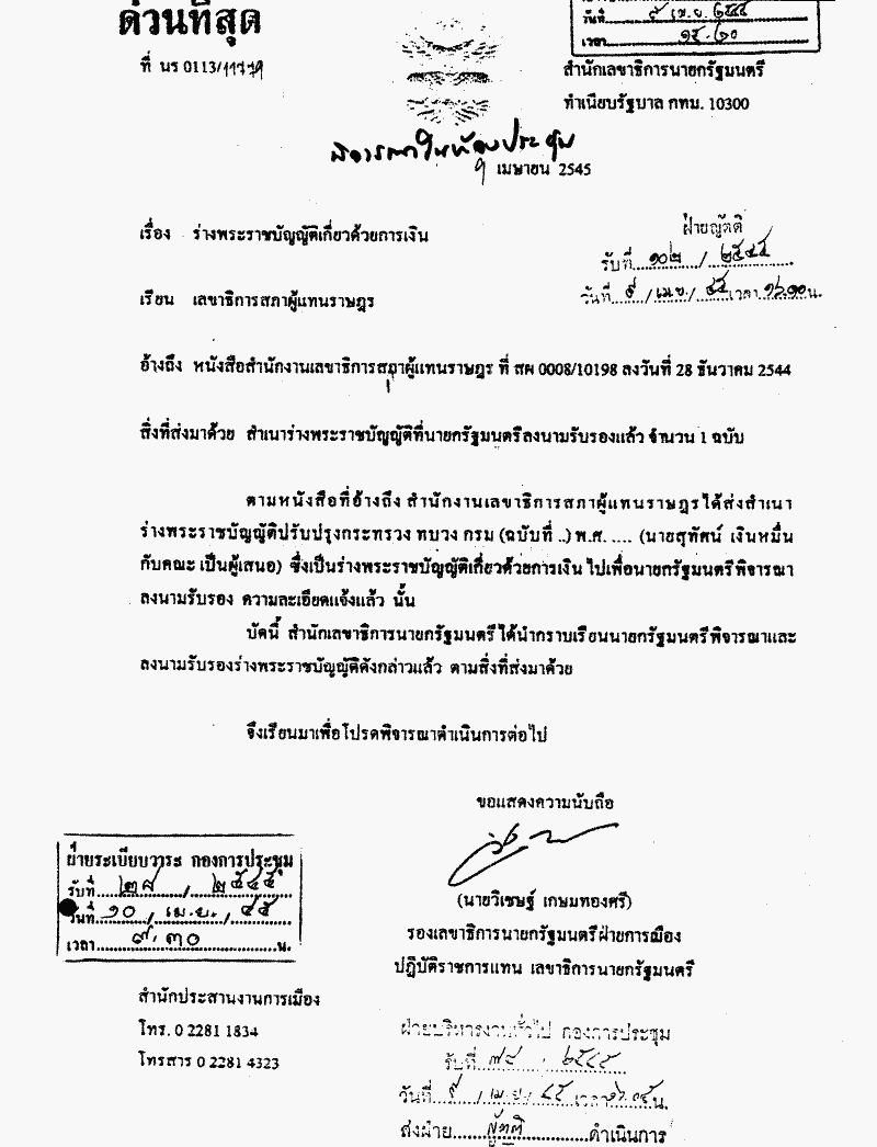 • ร่างพระราชบัญญัติเกี่ยวด้วยการเงิน