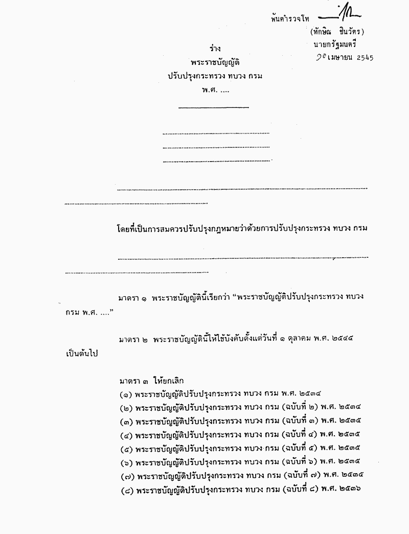 ร่างพระราชบัญญัติปรับปรุงกระทรวง ทบวง กรม พ.ศ. ....