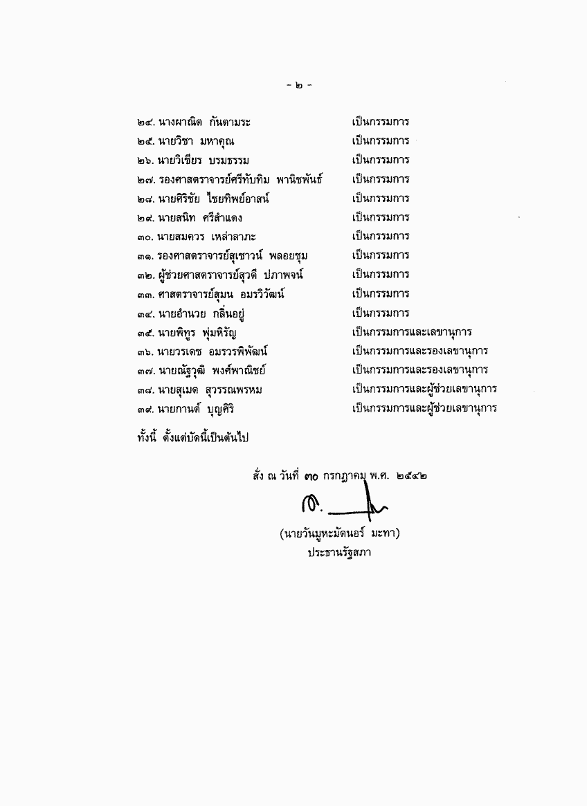 คำสั่งรัฐสภา ที่ 22 / 2542 เรื่อง แต่งตั้งคณะกรรมการอำนวยการพุทธธรรมสภา สภาผู้แทนราษฎร |