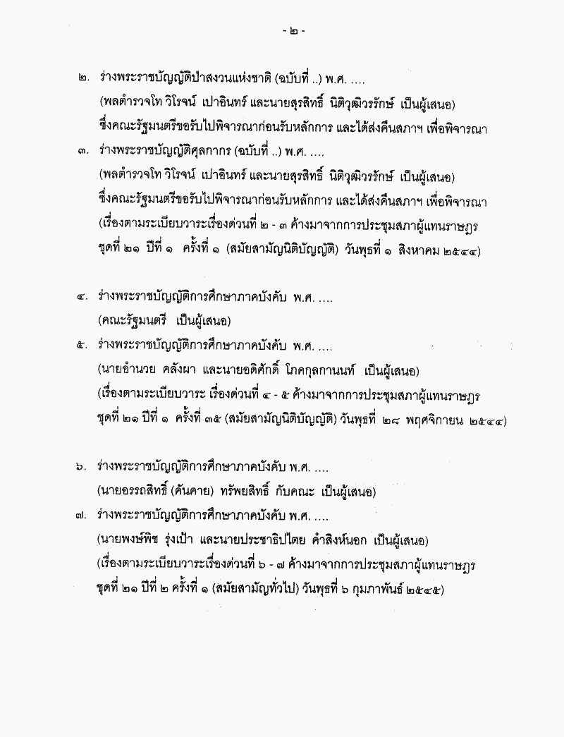 • ระเบียบวาระการประชุมสภาผู้แทนราษฎร ชุดที่ 21 ปีที่ 2 ครั้งที่ 18 (สมัยสามัญทั่วไป) วันพุธที่ 10 เมษายน 2545