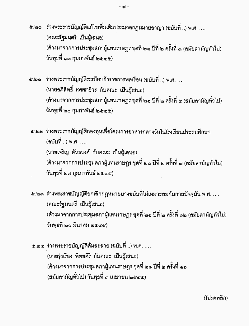 • ระเบียบวาระการประชุมสภาผู้แทนราษฎร ชุดที่ 21 ปีที่ 2 ครั้งที่ 18 (สมัยสามัญทั่วไป) วันพุธที่ 10 เมษายน 2545