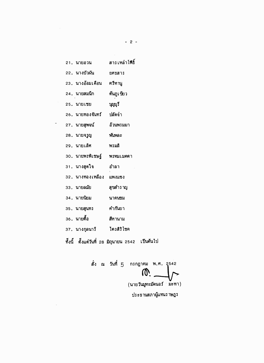 คำสั่งสภาผู้แทนราษฎร ที่ 19/2542 เรื่อง แต่งตั้งที่ปรึกษารองประธานสภาผู้แทนราษฎร คนที่ 2 |