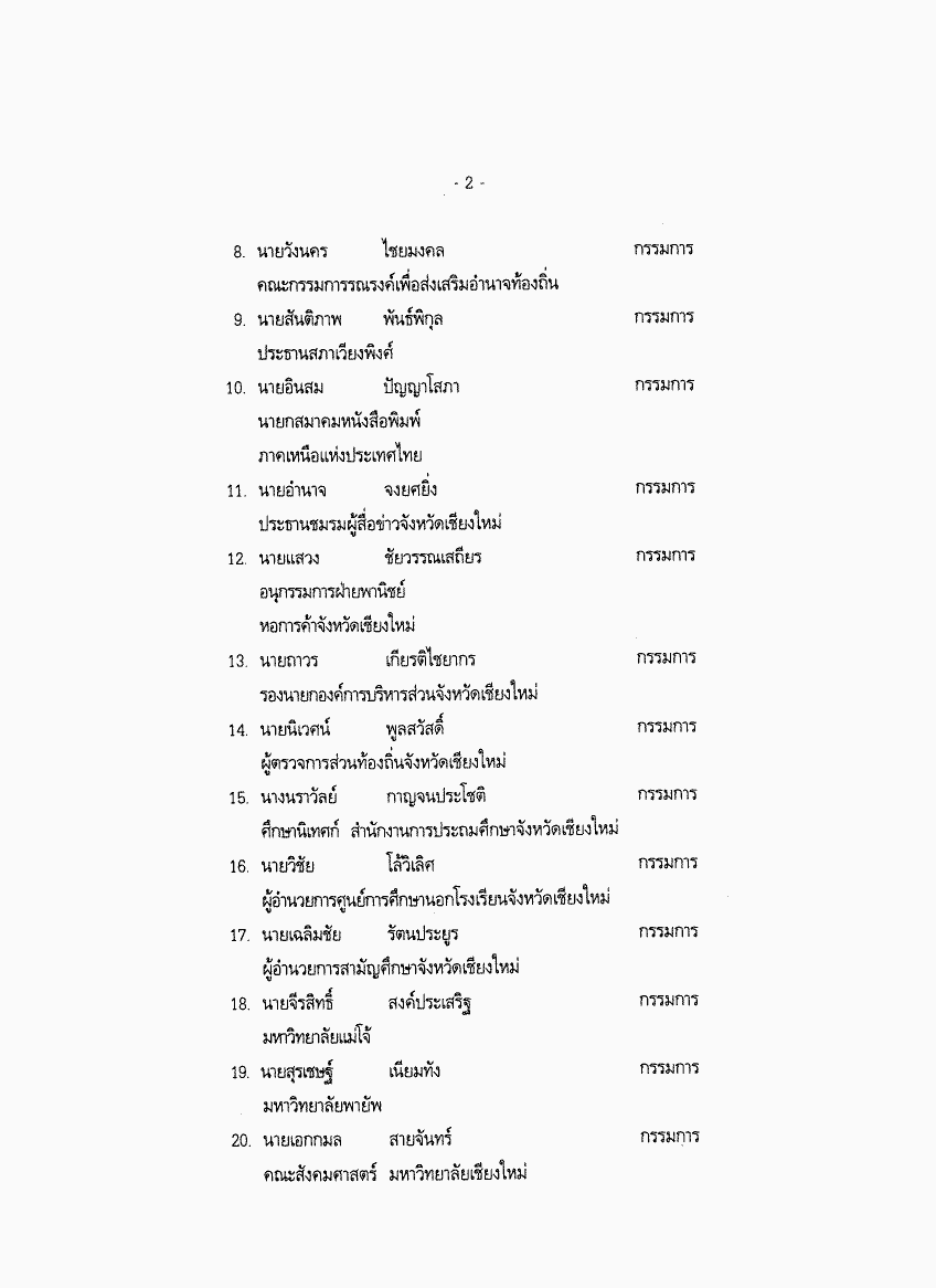 แต่งตั้งคณะกรรมการดำเนินงานศูนย์กิจกรรมประชาธิปไตยในระบอบรัฐสภาประจำจังหวัดเชียงใหม่ |