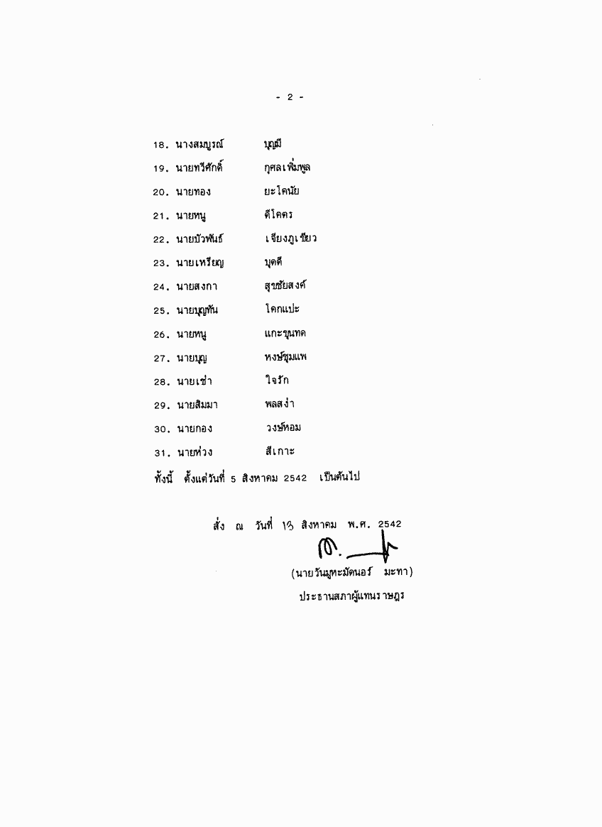 คำสั่งสภาผู้แพราษฎร ที่ 22/2542 เรื่อง แต่งตั้งที่ปรึกษารองประธานสภาผู้แทนราษฎร คนที่ 2 |