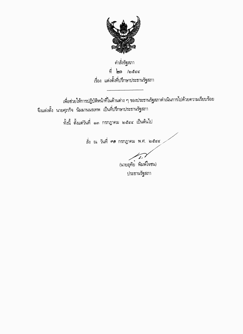 คำสั่งรัฐสภา ที่ 20 / 2544 เรื่อง แต่งตั้งที่ปรึกษาประธานรัฐสภา |