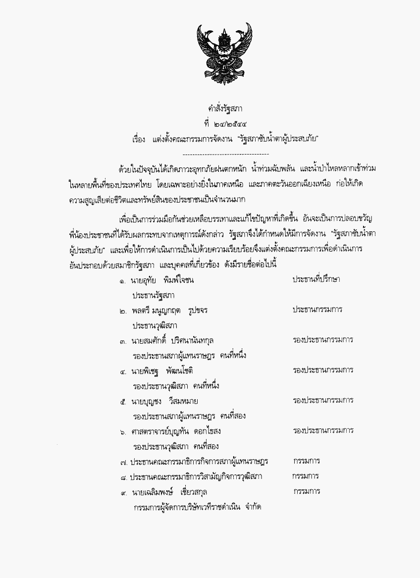 คำสั่งรัฐสภา ที่ 24 / 2544 เรื่อง แต่งตั้งคณะกรรมการจัดงาน |