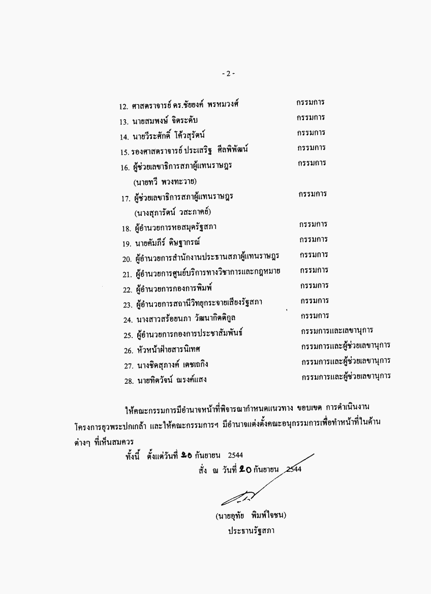 คำสั่งรัฐสภา ที่ 30 / 2544 เรื่อง แต่งตั้งคณะกรรมการยุวพระปกเกล้า |