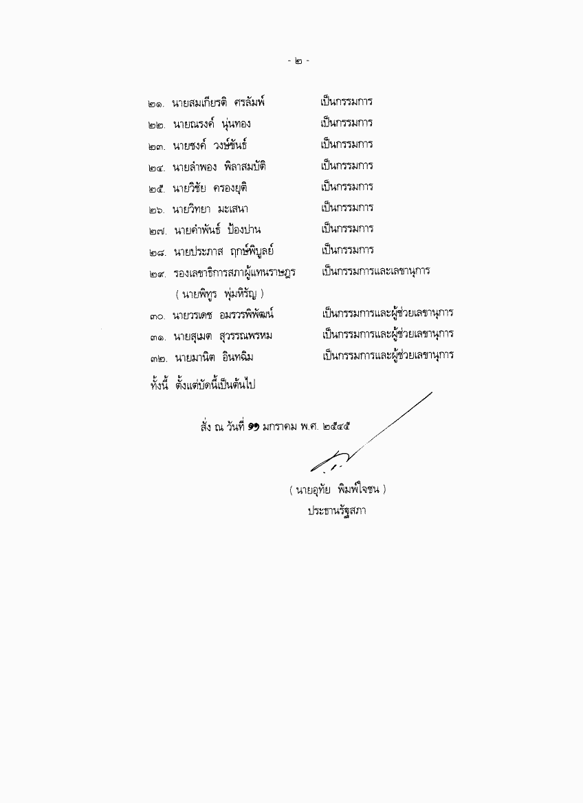 คำสั่งรัฐสภา ที่ 2 / 2545 เรื่อง แต่งตั้งคณะกรรมการอำนวยการพุทธธรรมสภา รัฐสภา |
