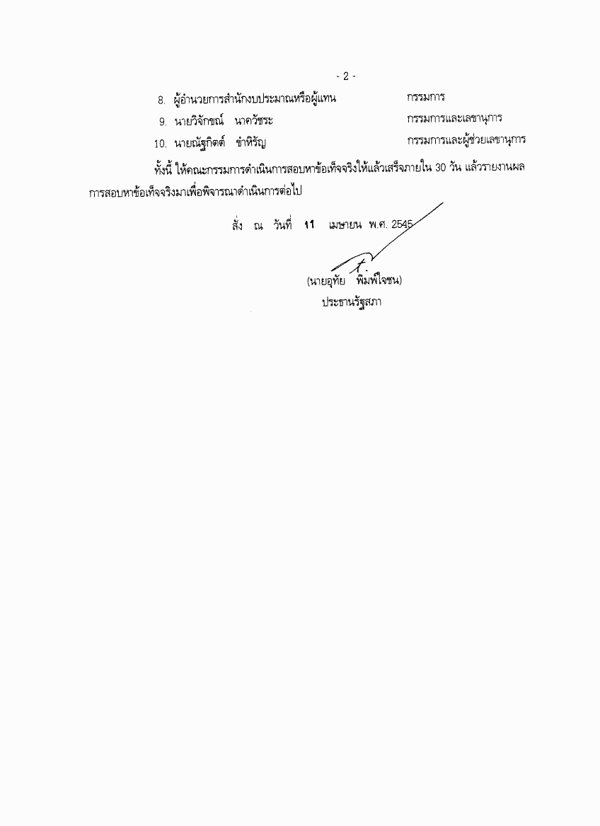 คำสั่งรัฐสภา ที่ 6 / 2545 เรื่อง แต่งตั้งคณะกรรมการสอบหาข้อเท็จจริง |