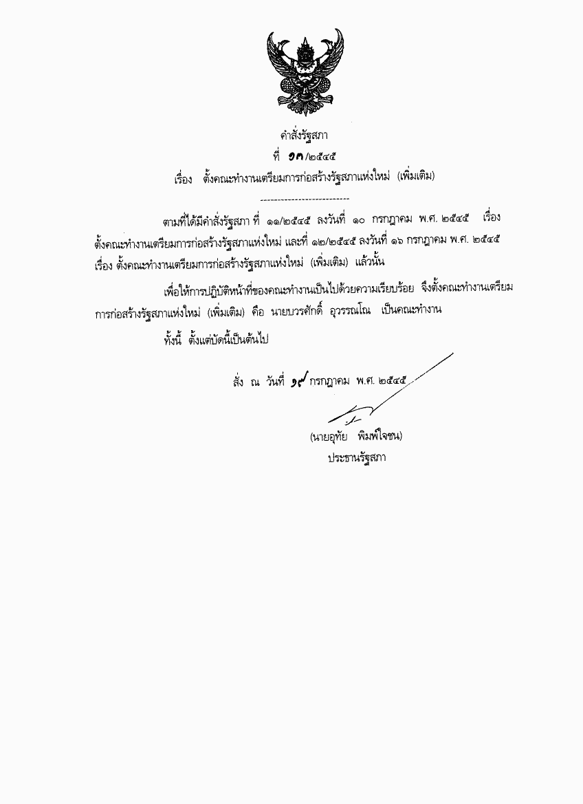 ตั้งคณะทำงานเตรียมการก่อสร้างรัฐสภาแห่งใหม่ (เพิ่มเติม) |