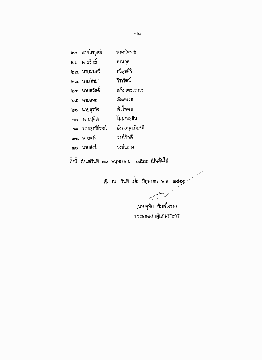 คำสั่งสภาผู้แทนราษฎร ที่ 15/2544 เรื่อง แต่งตั้งที่ปรึกษารองประธานสภาผู้แทนราษฎร คนที่สอง |