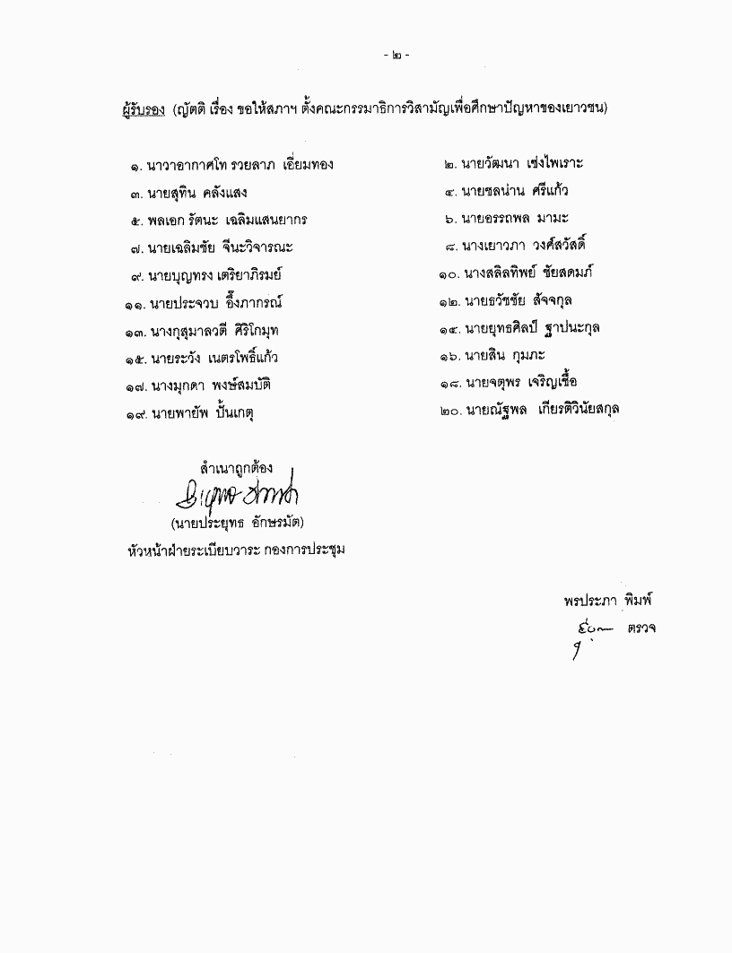 ขอเสนอญัตติ เรื่อง ขอให้สภาฯ ตั้งคณะกรรมาธิการวิสามัญเพื่อศึกษาปัญหาของเยาวชน |