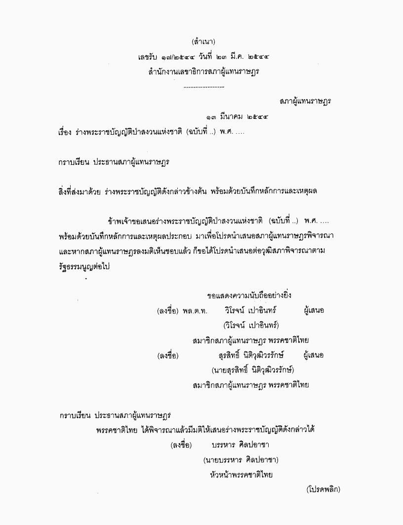 • ร่างพระราชบัญญัติป่าสงวนแห่งชาติ (ฉบับที่..) พ.ศ. ....