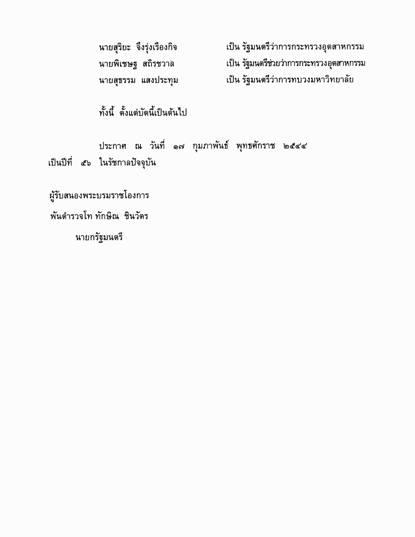 คำแถลงนโยบายของคณะรัฐมนตรี พันตำรวจโท ทักษิณ ชินวัตร นายกรัฐมนตรี แถลงต่อรัฐสภา วันจันทร์ที่ ๒๖ กุมภาพันธ์ ๒๕๔๔