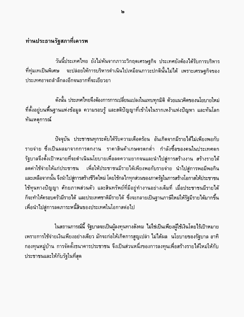 คำแถลงนโยบายของคณะรัฐมนตรี พันตำรวจโท ทักษิณ ชินวัตร นายกรัฐมนตรี แถลงต่อรัฐสภา วันจันทร์ที่ ๒๖ กุมภาพันธ์ ๒๕๔๔