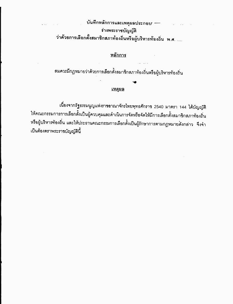 • ร่างพระราชบัญญัติว่าด้วยการเลือกตั้งสมาชิกสภาท้องถิ่นหรือผู้บริหารท้องถิ่น พ.ศ. ....