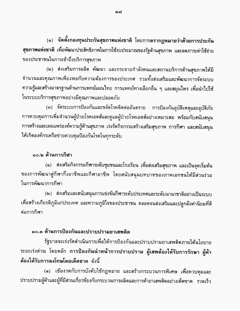 คำแถลงนโยบายของคณะรัฐมนตรี พันตำรวจโท ทักษิณ ชินวัตร นายกรัฐมนตรี แถลงต่อรัฐสภา วันจันทร์ที่ ๒๖ กุมภาพันธ์ ๒๕๔๔