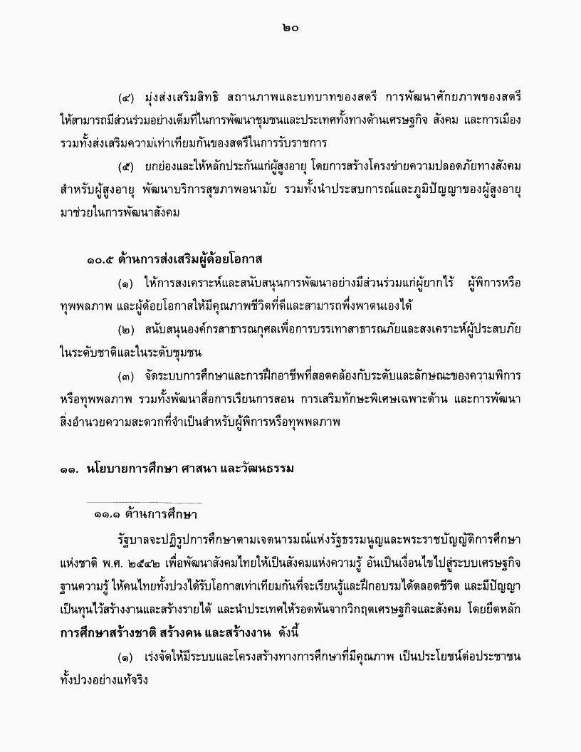 คำแถลงนโยบายของคณะรัฐมนตรี พันตำรวจโท ทักษิณ ชินวัตร นายกรัฐมนตรี แถลงต่อรัฐสภา วันจันทร์ที่ ๒๖ กุมภาพันธ์ ๒๕๔๔