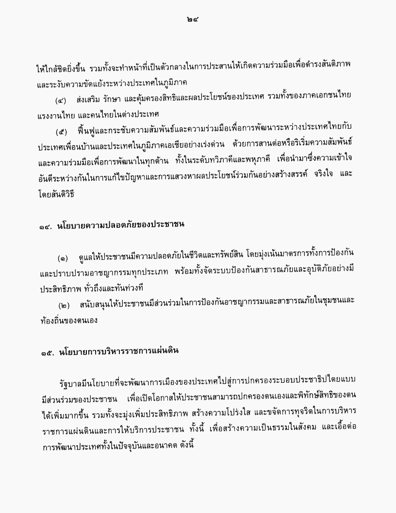 คำแถลงนโยบายของคณะรัฐมนตรี พันตำรวจโท ทักษิณ ชินวัตร นายกรัฐมนตรี แถลงต่อรัฐสภา วันจันทร์ที่ ๒๖ กุมภาพันธ์ ๒๕๔๔