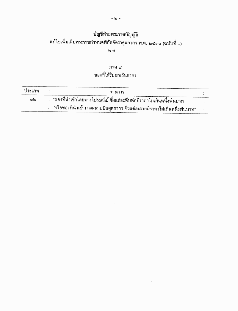 • ร่างพระราชบัญญัติแก้ไขเพิ่มเติมพระราชกำหนดพิกัดอัตราศุลกากรพ.ศ. ๒๕๓๐ (ฉบับที่ ..) พ.ศ. ....