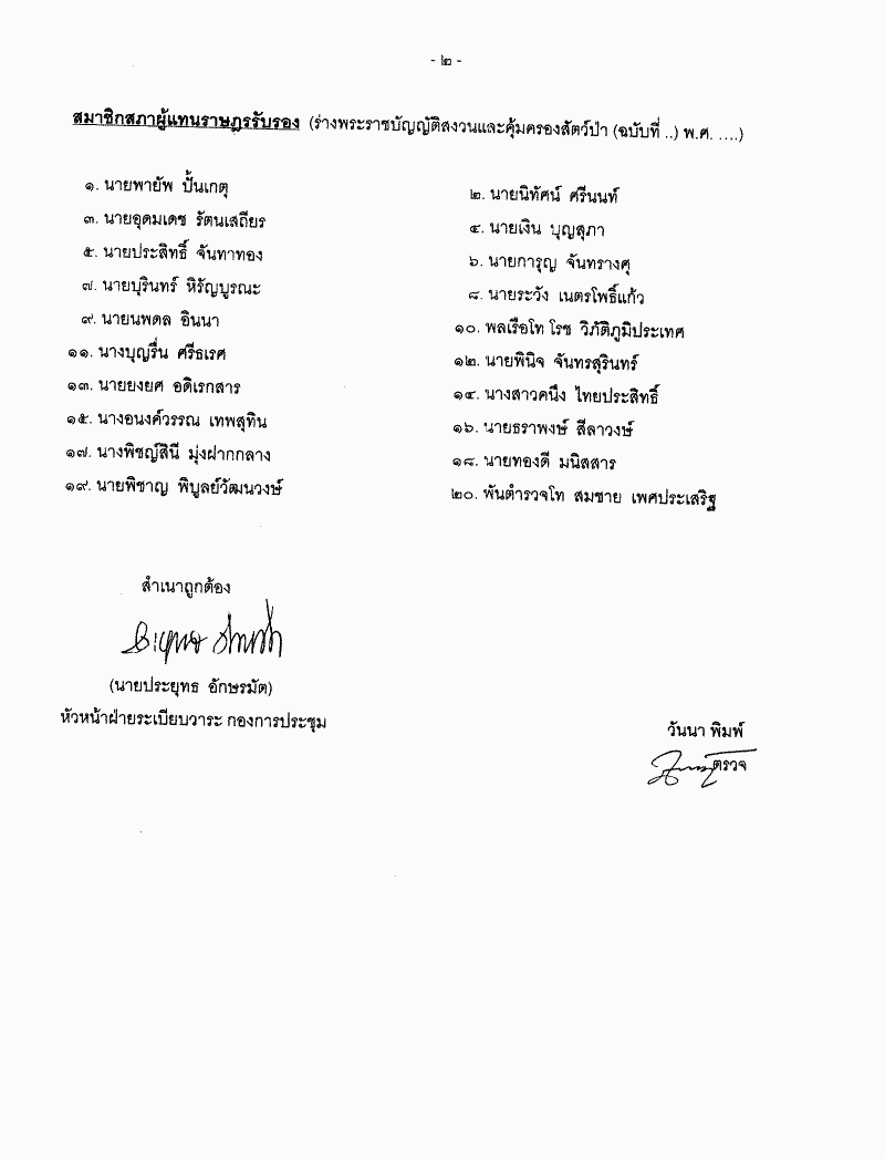 ร่างพระราชบัญญัติสงวนและคุ้มครองสัตว์ป่า (ฉบับที่ ..) พ.ศ. .... (นายอำนวย คลังผา กับคณะ เป็นผู้เสนอ) |