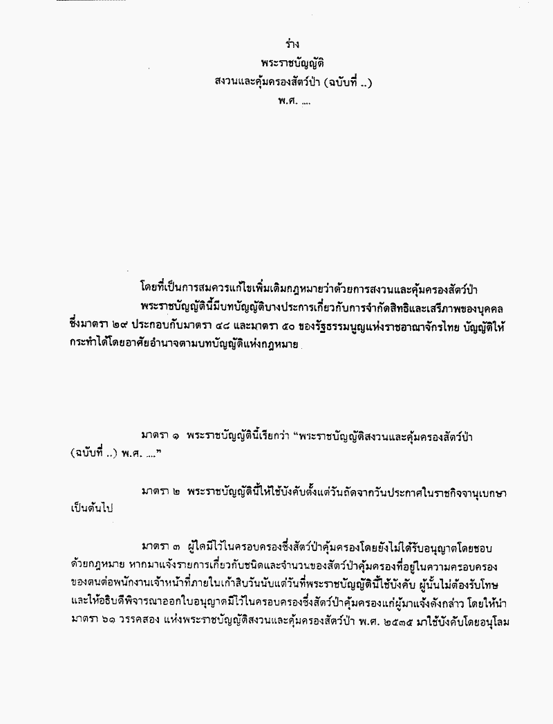 • ร่างพระราชบัญญัติสงวนและคุ้มครองสัตว์ป่า (ฉบับที่ ..) พ.ศ. ....