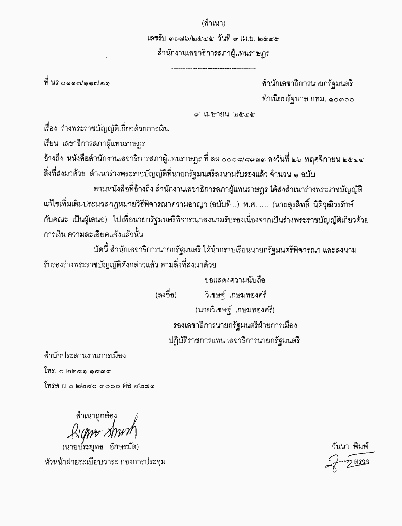 • ร่างพระราชบัญญัติเกี่ยวด้วยการเงิน