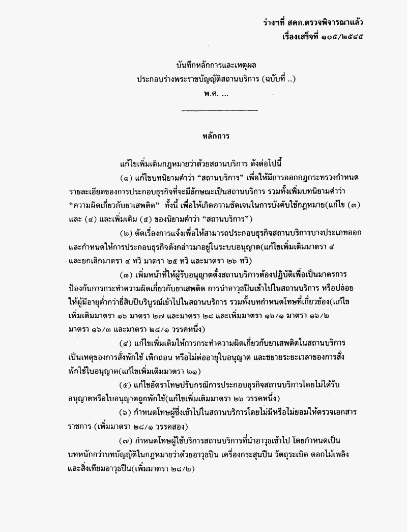 • ร่างพระราชบัญญัติสถานบริการ (ฉบับที่ ..) พ.ศ. ....