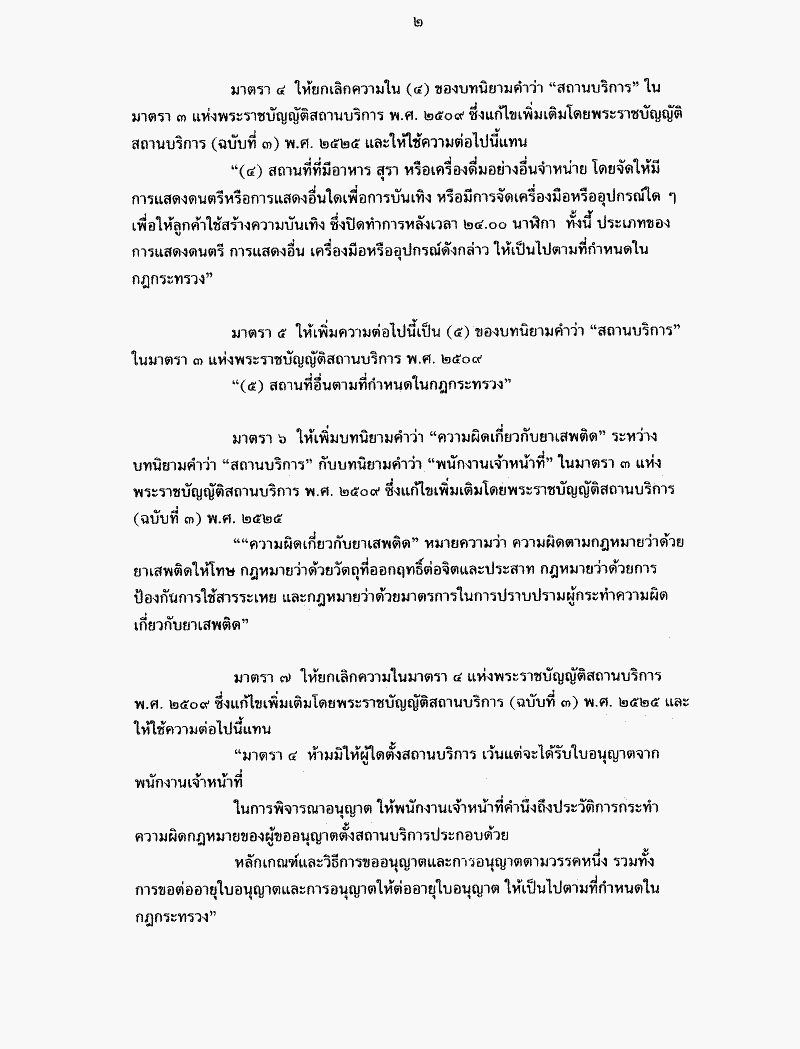 • ร่างพระราชบัญญัติสถานบริการ (ฉบับที่ ..) พ.ศ. ....