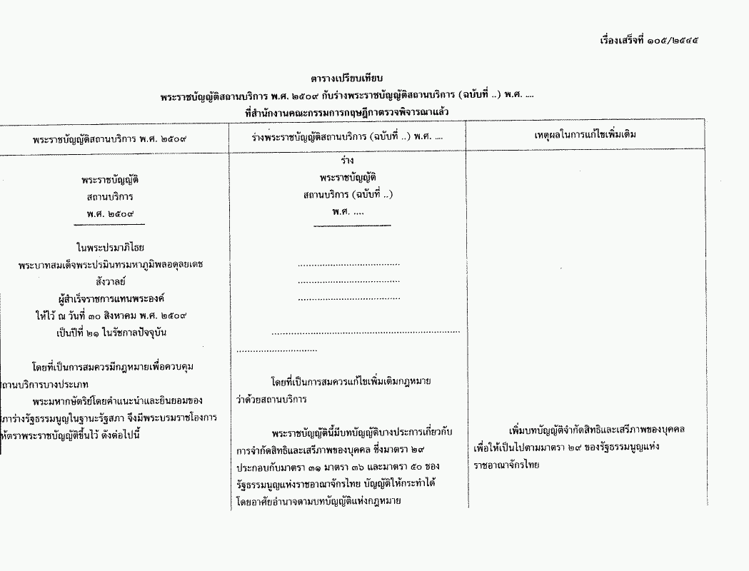 • ร่างพระราชบัญญัติสถานบริการ (ฉบับที่ ..) พ.ศ. ....