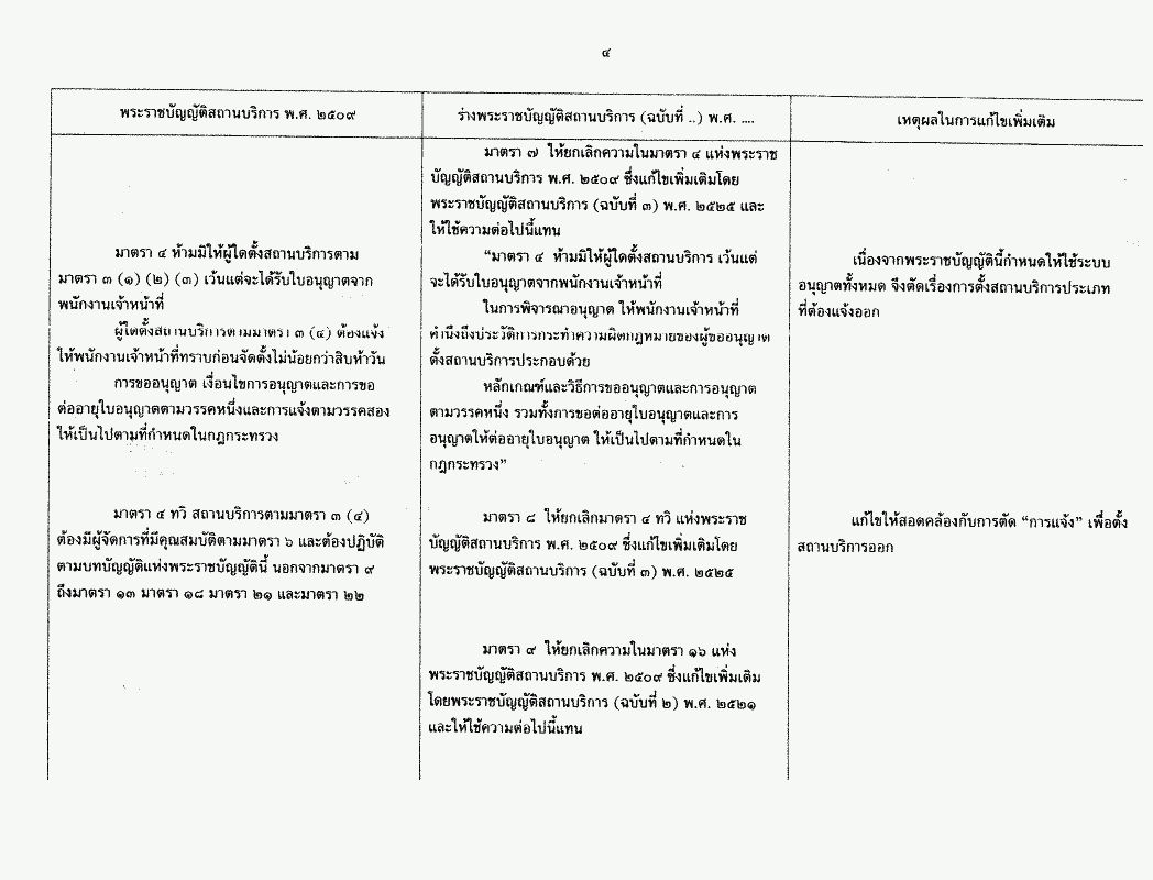 • ร่างพระราชบัญญัติสถานบริการ (ฉบับที่ ..) พ.ศ. ....