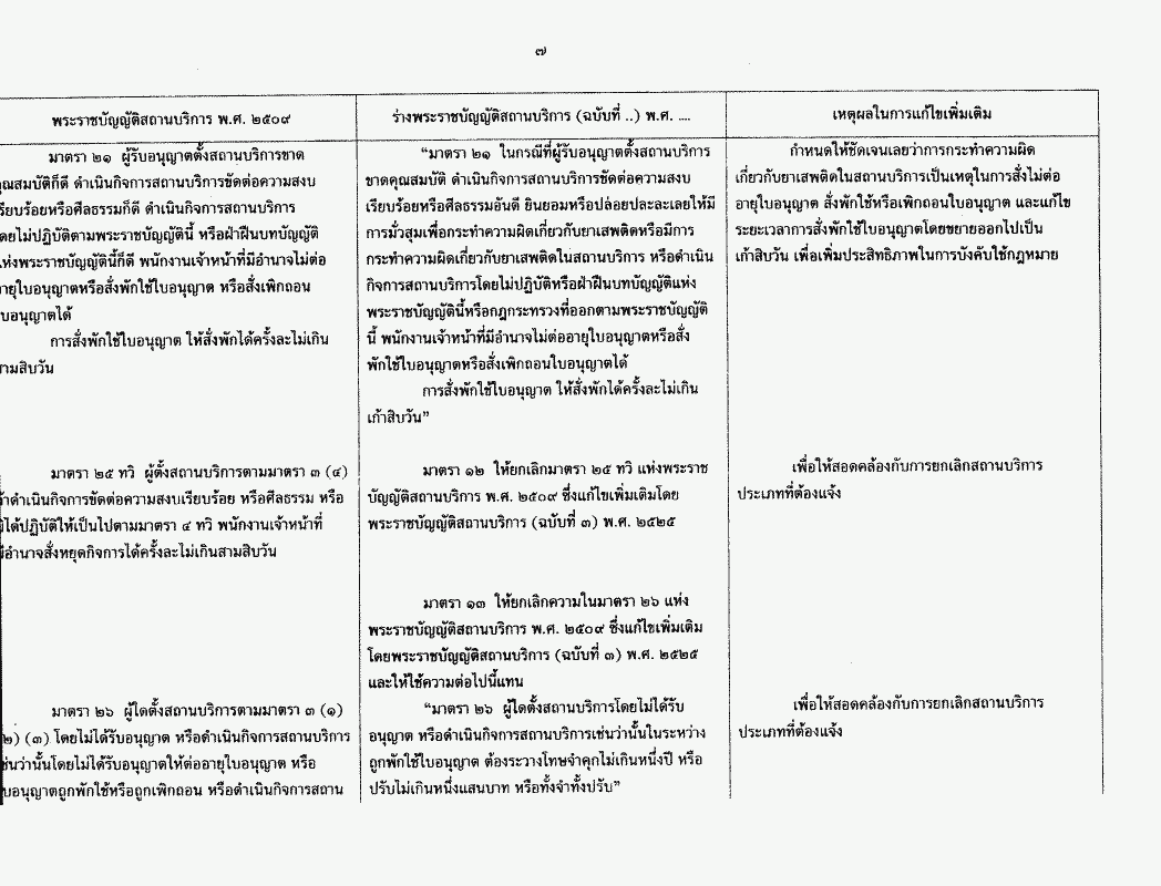 ร่างพระราชบัญญัติสถานบริการ (ฉบับที่ ..) พ.ศ. .... |