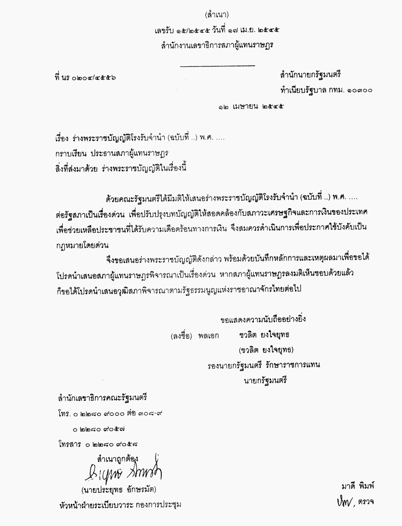 • ร่างพระราชบัญญัติโรงรับจำนำ (ฉบับที่ ..) พ.ศ. ....