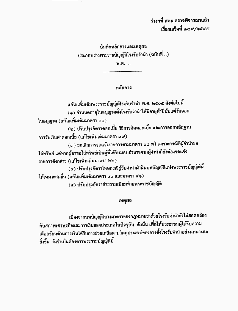 • ร่างพระราชบัญญัติโรงรับจำนำ (ฉบับที่ ..) พ.ศ. ....