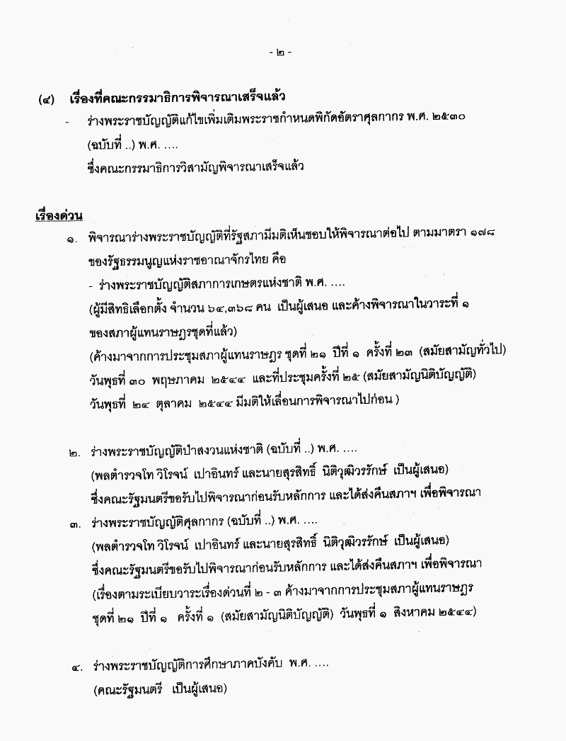 • ระเบียบวาระการประชุมสภาผู้แทนราษฎร ชุดที่ 21 ปีที่ 2 ครั้งที่ 19 (สมัยสามัญทั่วไป) วันพุธที่ 24 เมษายน 2545