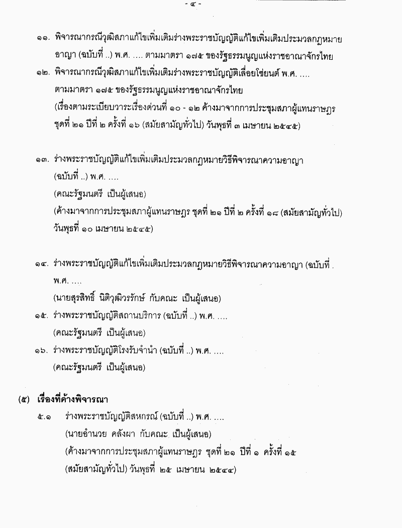 • ระเบียบวาระการประชุมสภาผู้แทนราษฎร ชุดที่ 21 ปีที่ 2 ครั้งที่ 19 (สมัยสามัญทั่วไป) วันพุธที่ 24 เมษายน 2545