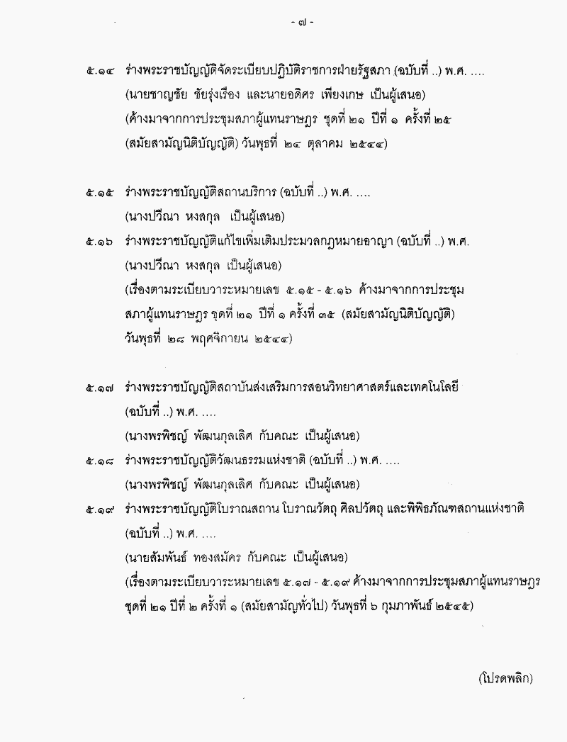 ชื่อเอกสาร : ระเบียบวาระการประชุมสภาผู้แทนราษฎร ชุดที่ 21 ปีที่ 2 ครั้งที่ 19 (สมัยสามัญทั่วไป) วันพุธที่ 24 เมษายน 2545