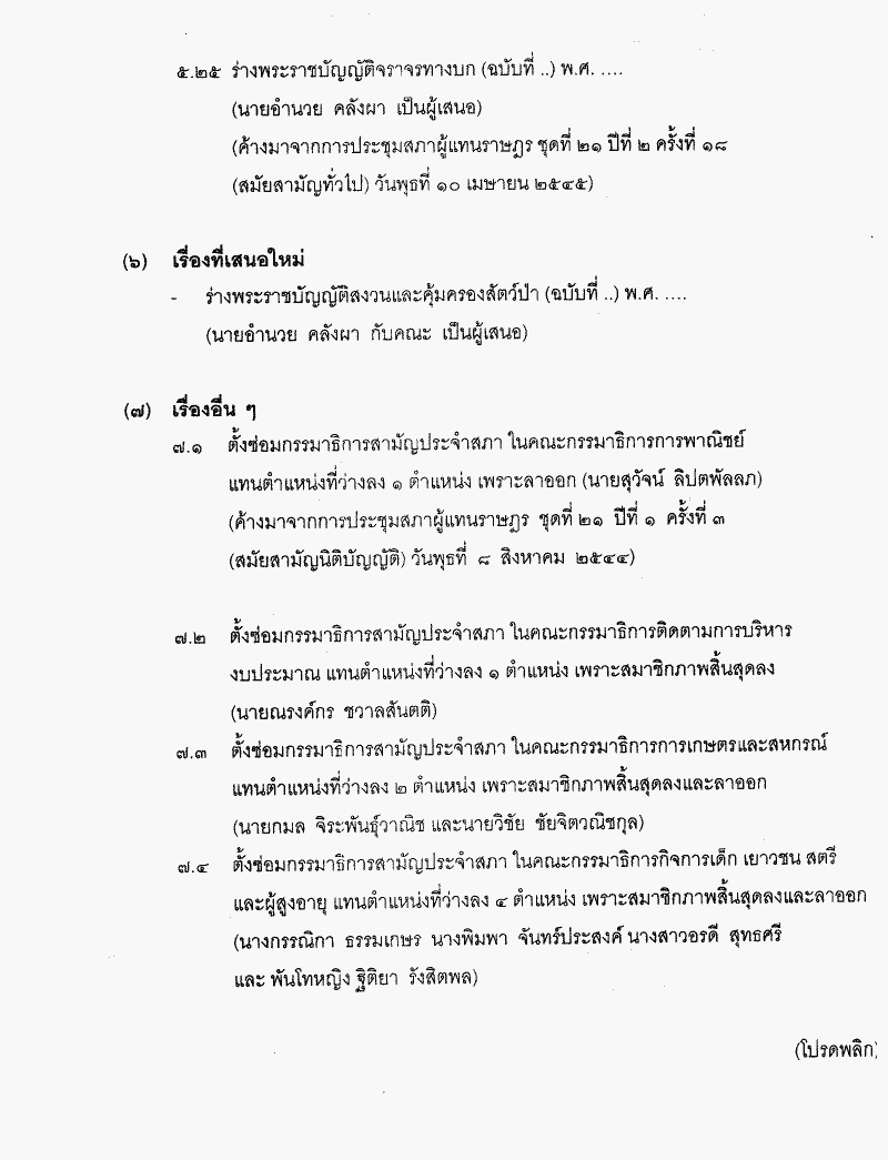 • ระเบียบวาระการประชุมสภาผู้แทนราษฎร ชุดที่ 21 ปีที่ 2 ครั้งที่ 19 (สมัยสามัญทั่วไป) วันพุธที่ 24 เมษายน 2545