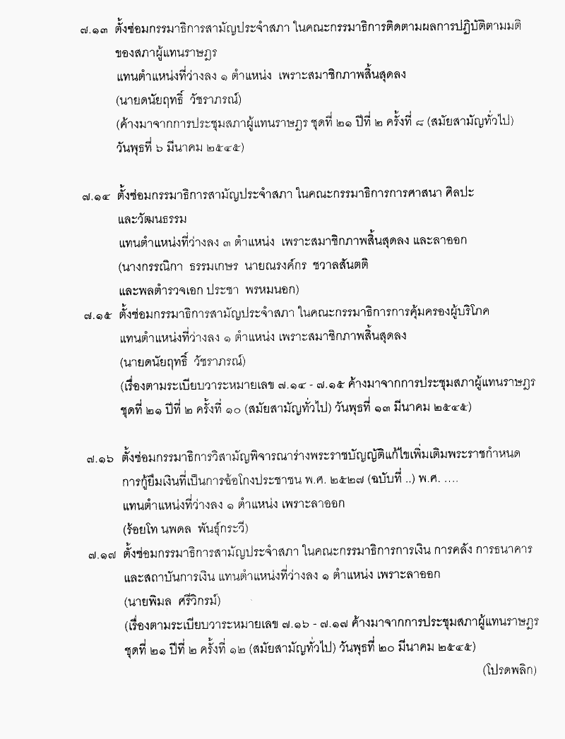 • ระเบียบวาระการประชุมสภาผู้แทนราษฎร ชุดที่ 21 ปีที่ 2 ครั้งที่ 19 (สมัยสามัญทั่วไป) วันพุธที่ 24 เมษายน 2545