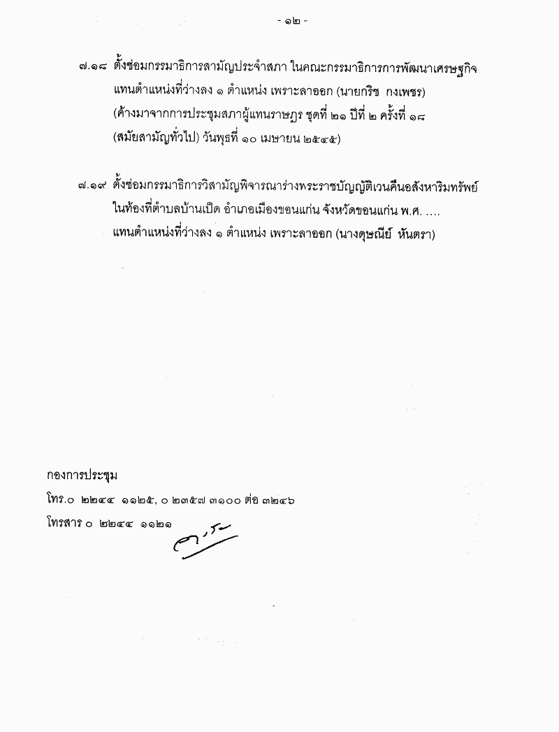 ระเบียบวาระการประชุมสภาผู้แทนราษฎร ชุดที่ 21 ปีที่ 2 ครั้งที่ 19 (สมัยสามัญทั่วไป) วันพุธที่ 24 เมษายน 2545 |